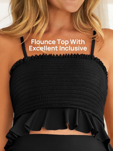 • 【RUFFLE BIKINI TOP】Adjusted ruffled shoulder strap/ high waisted bikini bottoms tummy control/ cute shirred swimsuit/ sexy bandeau bikini top/ High cut bottom