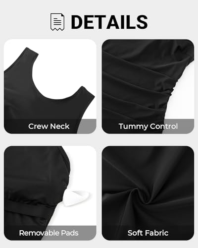 • Plus size tummy control bathing suits: Our sporty 1 piece swimsuit combines fashion and comfort . Its tummy control feature and ruched design not only accentuate your curves but also cleverly conceal any imperfections.