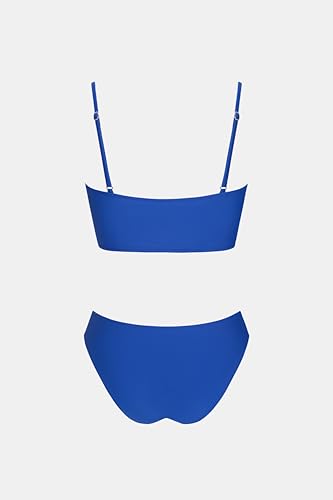 CUPSHE Women's Bikini Sets Two Piece Swimsuit Bandeau Top Square Neck Mid Rise Ruched Bathing Suit Spaghetti Straps 7