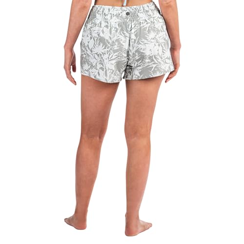 • High-waisted smocked waistband for extended comfort and flexibility and that perfect synched waistline. Flattering short length: 3.5" Inseam. Mase of lightweight, quick-dry materials for on and off the beach.
