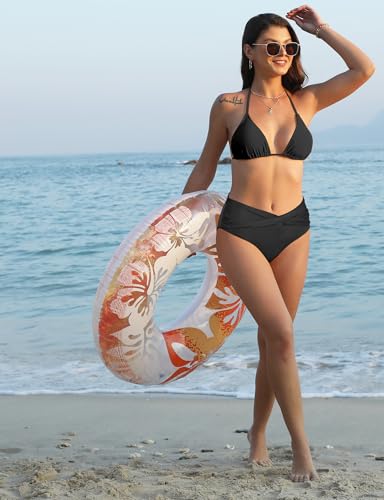 HOT ! Women's Twist Bikini Bottom Moderate High Cut Swimsuit Bottom Cross V Cut Ruched Ruffles Bathing Suit Bottoms