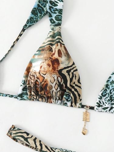 • Features: 2 piece sets. The bikini top is leopard and cheetad printed, tie at back, triangle, removable padding, offering you a great support, enhancing your shape and bringing you closer fitting. The bikini bottom features a stylish high cut waist design for you, which brings you a sexy look with enduring comfort.