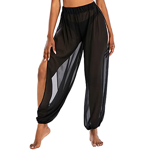 American Trends Sheer Beach Mesh Swimsuit Cover Up Harem Pants for Women High Slit See Through 7
