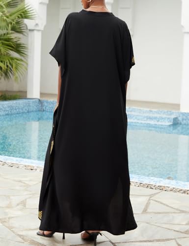 Eddoyee Kaftan Dresses for Women Embroidered Short Sleeve V-Neck Plus Size Caftan Bikini Swimsuit Cover-Up Long Beach Dress 3