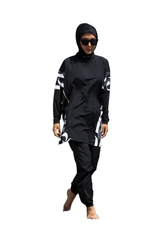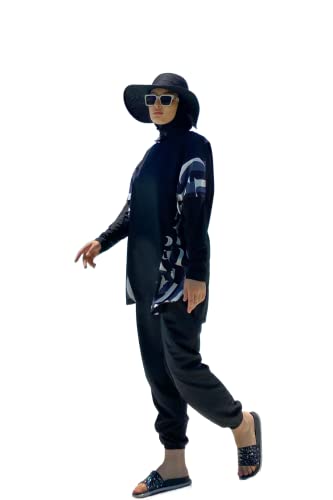 More information about Huma & Hazel - Fully Covered Modest Black Swimsuits Patterned Style Burkini Swimwear 3 Pieces - Made in Turkey