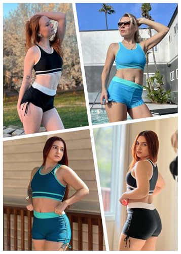 Holipick Women's Sporty Bikini Sets Two Piece Color Block Swimsuit Bathing Suits with High Waisted Boy Shorts Bottom 4