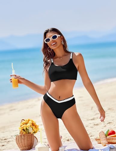 AI'MAGE Women's High Cut Bikini Set 2 Piece Sporty Swimsuit Color Block Bathing Suit with Trim 1