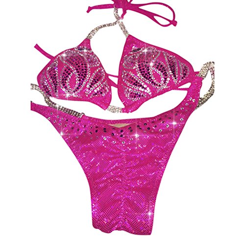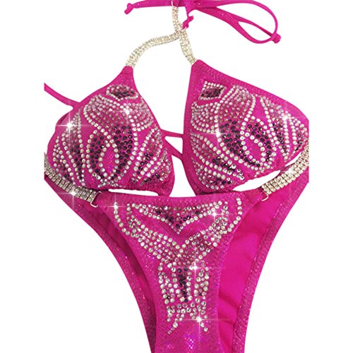 HOT ! Hot Pink Bikini Competition Contest Bikinis Rhinestone Bikini w Padded top (Small Hips 32"-34", A/B)