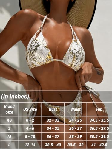 Snakeskin Metallic Bikini,String Halter Triangle Bikinis Set,Sexy Strappy Cheeky Swimsuits for Women Tanning Pool 4