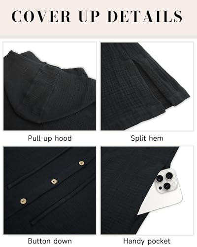 More information about Bsubseach Cotton Swimsuit Cover Up For Women 2025 Button Down Hooded Shirt Short Sleeve Beach Cover Ups With Pockets