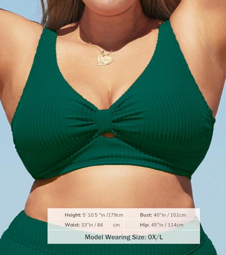 CUPSHE Women Swimsuit Plus Size Bikini Top Ribbed Texture Knotted Front Fixed Wide Straps No Bottom 6