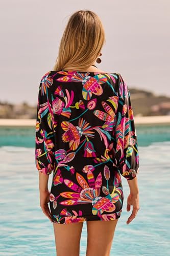 • [ Vibrant Floral Print ] – The multicolored floral print is bold and vibrant, adding a fun splash of color to your summer wardrobe and perfectly complementing the tunic’s casual, flowing design.
