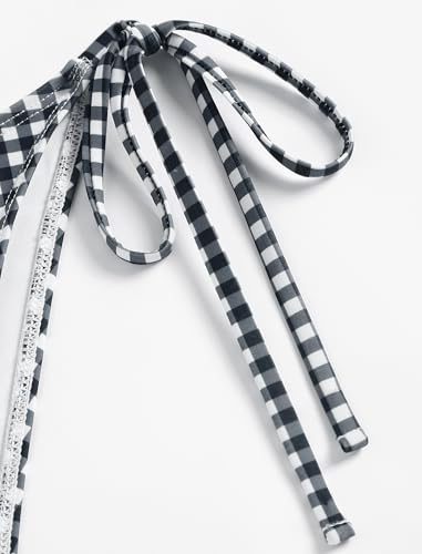More information about ZAFUL Women's Gingham Ruched Bowknot Decor Cinched Back Tankini Set Tummy Control 2 Piece Bikini Swimsuits