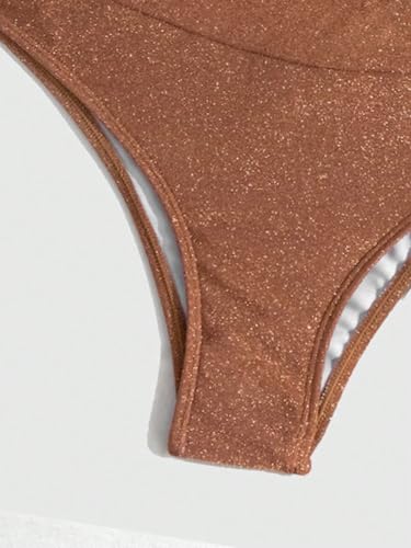 More information about SweatyRocks Women's Solid V Neck High Waist Bikini Set Summer Sparkly Two Piece Bathing Suit