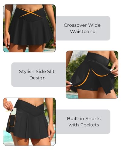 • Black Swim Skirt: This high waist swim skirt features an elastic waistband for a flattering but not constricting fit,providing a tummy control effect.