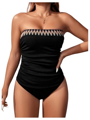 SOLY HUX Strapless Tankini Swimsuits for Women Boho Bandeau Bikini Tummy Control Two Piece Modest Bathing Suits 1