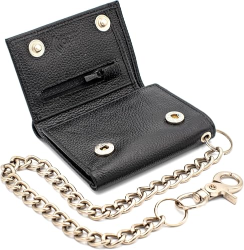 Chain Wallets for men Biker Chains Top-Grain Cow Leather Trifold Wallet With Chain RFID-Safe Snake Texture, Durable Wallet Leather Wallets Design In USA (J110-WC, Black) 5