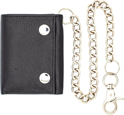 Chain Wallets for men Biker Chains Top-Grain Cow Leather Trifold Wallet With Chain RFID-Safe Snake Texture, Durable Wallet Leather Wallets Design In USA (J110-WC, Black) 1