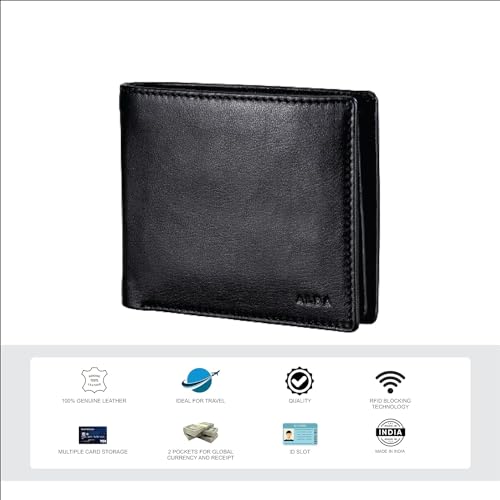 Alba Classic Bifold Nappa Leather Wallet For Men Handmade II Minimalist II RFID Protected (Black) 1