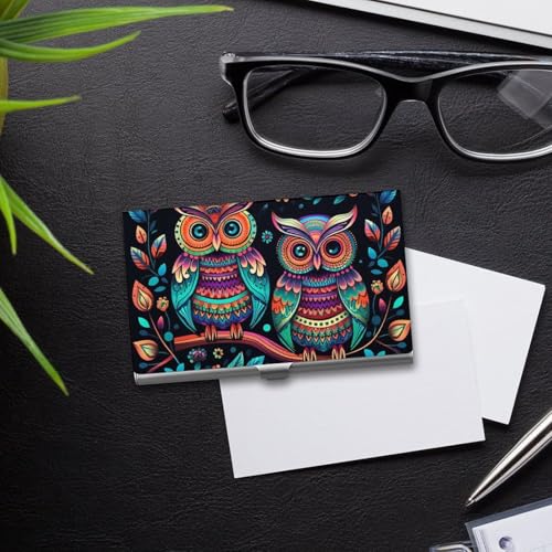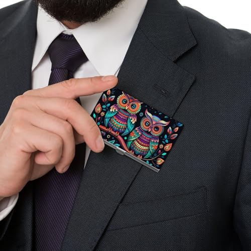 Slim Business Card Case for Men & Women, Pocket Metal Case, Colorful Owl Pictures Professional Aluminum Alloy Business Card Holders, Stylish Purse Name Cards Holder, Buckle Style Shut 1