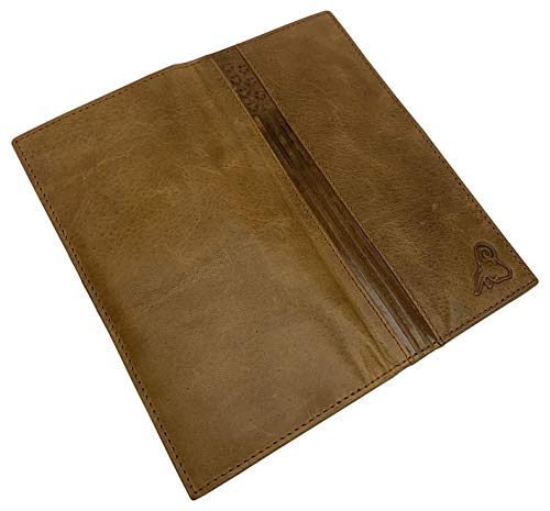 Genuine Leather Long Bifold Checkbook Cover Wallet Multi Card Pocket Holder USA Series (Tan) 5