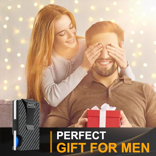 HOT ! Trackable Thin Card Wallet For Men - Leather Bluetooth Anti-Lost Credit Card Holder with Metal Money Clip Men's Card Holder Minimalist Smart Men's Wallet (IOS-Carbon)