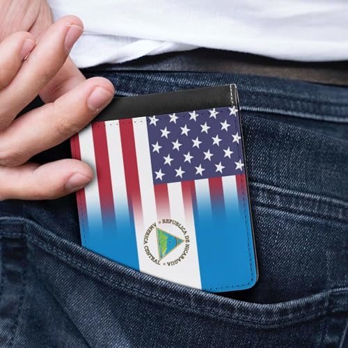 U.S.A. Nicaragua Flag Leather Wallets for Men Slim Bifold Purse Clutch with 6 Credit Card Pockets 1