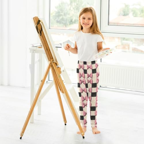 Boccsty Pink Bows Checkered Girls Leggings Kids Yoga Pants Dance Active Tights 4T 5