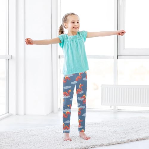 Red Chinese Dragon Cloud Girls Leggings Ultra Soft Compression Yoga Gym Pants for Kids 4-10T 5