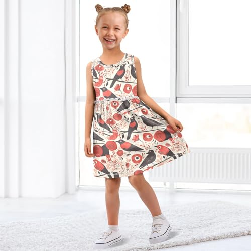 KLL Red Roses with Eyeballs and Black Crows Girl A Line Dress Cute Beach Sundress Summer Round Neck 6