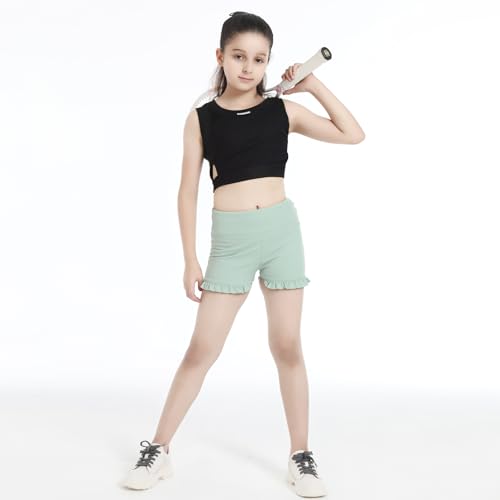 Girls Athletic Shorts Ruffle High Waisted Stretch Yoga Shorts for Kids, Comfy Dance Gymnastics Shorts for 5-14 Y 2