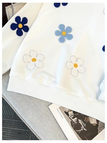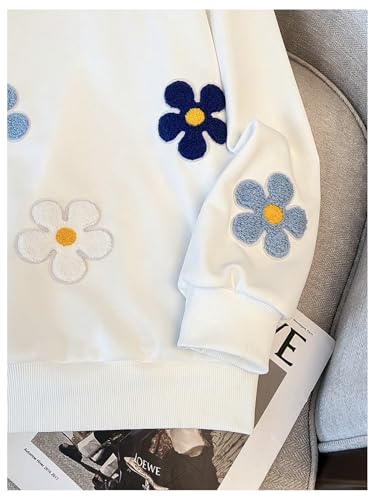 Milumia Girl's Flower Patched Crew Neck Sweatshirt Long Sleeve Loose Pullovers 4