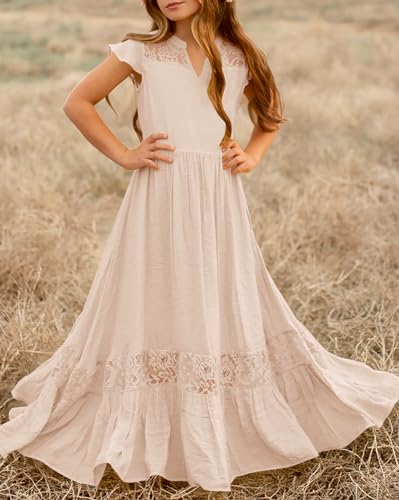 HOSIKA Girls Elegant Lace Ruffle Sleeve A-Line Formal Wedding Party Flower Girl Dress 6-12 Years 1