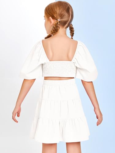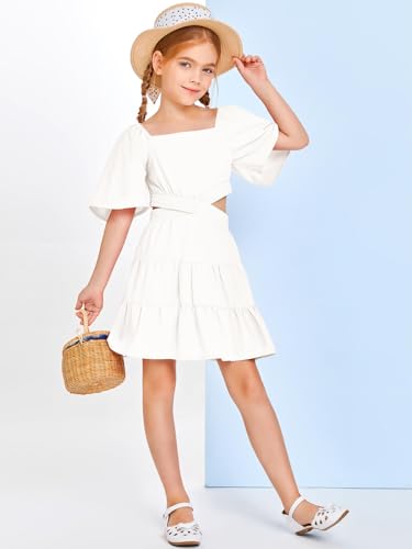 Batermoon Girls Summer Dress Square Neck Short Sleeve Crossover Waist Casual A-line Mini Dress 6