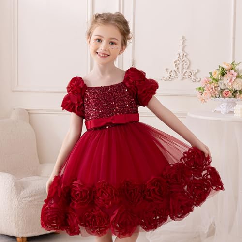 • Make your little princess shine in this stunning tulle dress for girls, featuring exquisite 3D floral embroidery and dazzling sequins! Perfect for weddings, birthdays, or graduations, this toddler girl party dress