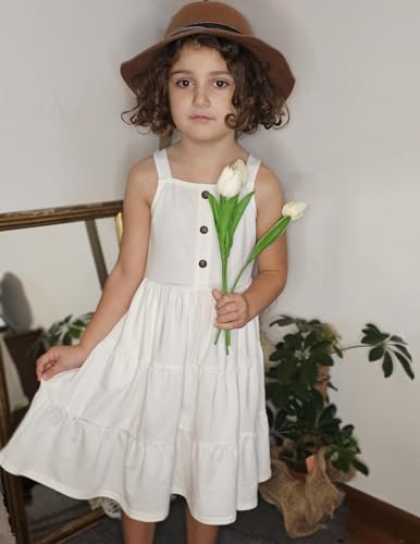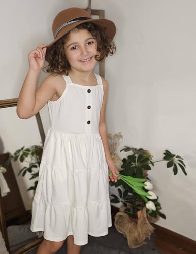 More information about Arshiner Toddler Girl Summer Dresses Casual Sleeveless Button Down Swing Flowy Tiered Midi Sundress with Pockets