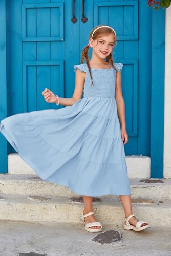 GRACE KARIN Girls Dress Summer Tie Back Party Dress Ruffle Sleeve Smoke Tiered Special Occasions Maxi Tween Dresses Size 5-14 6