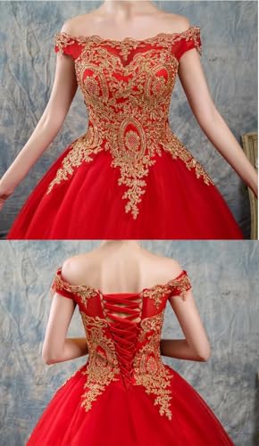 More information about Asulla Gold Appliques Off The Shoulder Quinceanera Dress Tulle Puffy Ball Gown Long Homecoming Prom Evening Dress