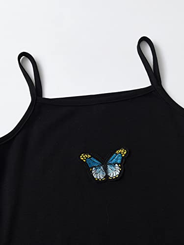 HOT ! OYOANGLE Girl's 2 Piece Outfit Butterfly Patched Cami Dress with Long Sleeve Button Down Crop Shirt Set