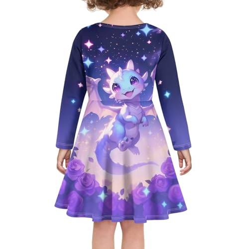 Cute Dragon Dresses for Kids Girl 4-14T Long Sleeve Midi Dress Fall Casual Dresses 2025 Round Neck Sundress 4