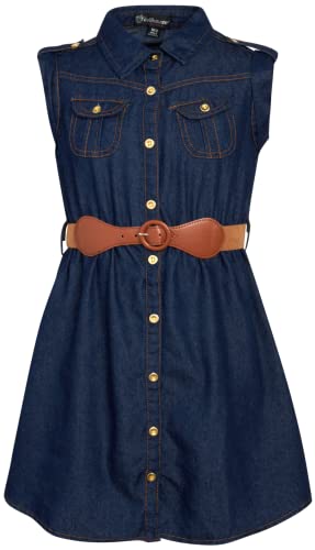 HOT ! dollhouse Girls' Belted Denim Dress – Durable Collar Button Up Jean Dress for Girls (Sizes: 7-16)