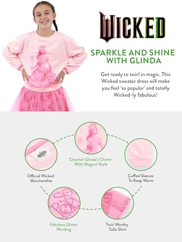 • Enchanting Glittery Design: Featuring a cozy pink Wicked sweater with Glinda the Good Witch and the phrase “So Popular!” in glittery pink writing, this girl dress is a magical blend of comfort and style