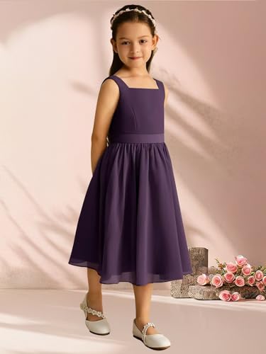 Square Neck Chiffon Flower Girl Dresses for Wedding A-line Tea Length First Communion Dress 5