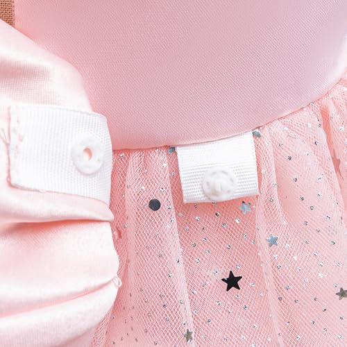 • The suspenders are inlaid with pure white pearls, and matched with the star sequins on the skirt, the overall look is sparkling and elegant.