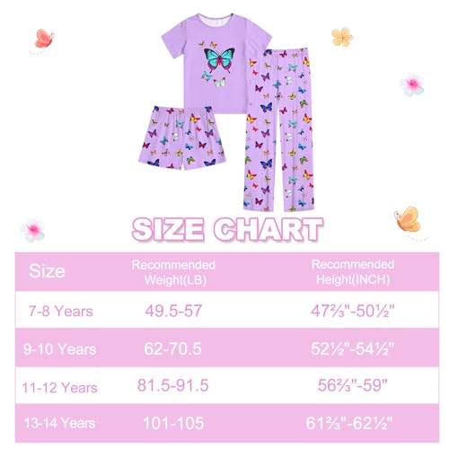 • Versatile Sleepwear Set: This 3-piece pajama set is designed for girls aged 7-14, offering a sleepwear ensemble with a short-sleeved top, comfortable shorts, and cozy long pants
