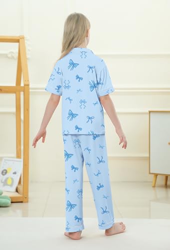 Umeyda Girls Pajamas Set Button Down Notch Collar Soft Short Sleeve Pjs Set with Long Pant Set Lounge Set 6