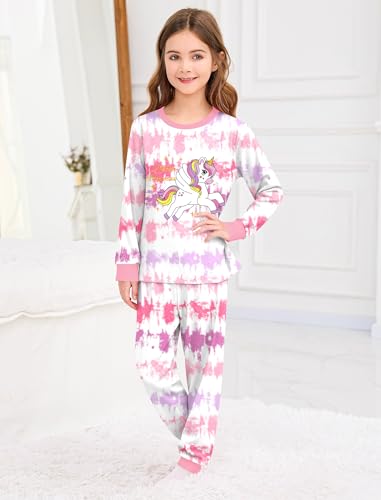 Mikrdoo Girls Pajamas Set Long Sleeve Tie Dye 2-Piece Kids PJs Sleepwear Size 4-14 Years 4