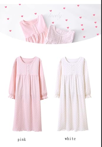 Girls' Princess Nightgowns Heart Print Sleep Shirts Cotton Sleepwear for 3-12 Years 5
