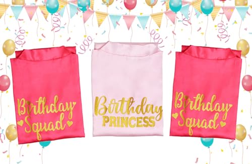 • Satin Robes for Girls Spa Party: With "Birthday Princess"/" Birthday Squad" gold glittering graphic on the back. "Princess" for protagonist and "Squad" for siblings. So it's a nice gift for friends/ families and photo shooting together.