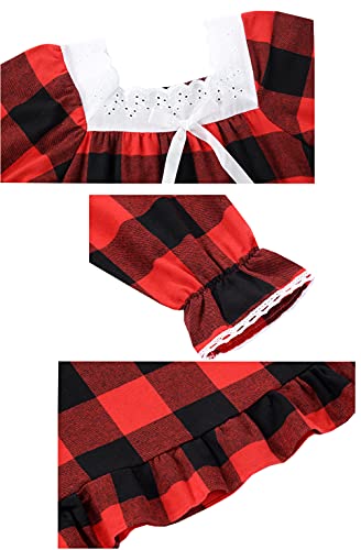 Girls' Flannel Classic Plaid Pajamas with Long Sleeve Nightgown Sleepwear Dress 3-13Years 5